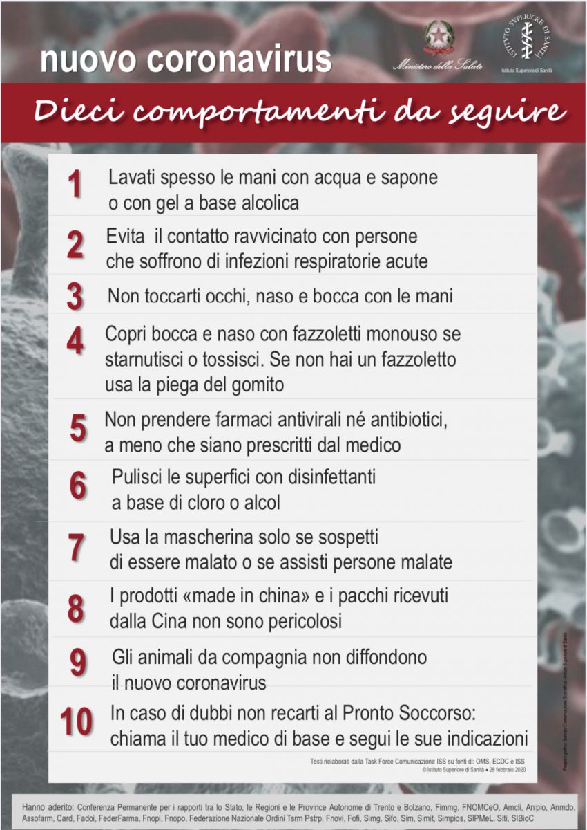 ISS e Ministero della Salute: un decalogo sul coronavirus con Regioni, Ordini professionali e Società scientifiche